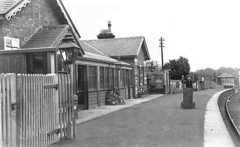 Keywords: 54 46N 1 42W Waterhouses railway station, early 1920's, was on the Deerness Valley Railway, south of the village of Esh Winning in County Durham. 1 November 1877 Opened. 29 October 1951 Closed.