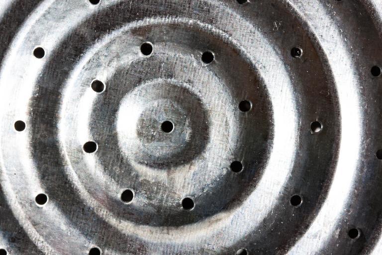 Keywords: watering can shower shower mouthpiece rings holes concentric zinc plated metal macro