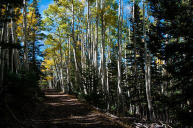| Keywords: abineau-bear jaw loop abineaubearjawloop arizona coconino national forest coconinonationalforest fr 146 fr146 flagstaff ranger district flagstaffrangerdistrict forest road 146 forestroad146 forest service forestservice kachina peaks wilderness kachinapeakswilderness san francisco mountain sanfranciscomountain san francisco peaks sanfranciscopeaks usfs waterline road waterlineroad waterline trail waterlinetrail waterline trail #146 waterlinetrail146 waterline trail no. 146 waterlinetrailno146 aspen aspens fall color fallcolor fall colors fallcolors fall foliage fallfoliage flagstaff forest hiking mountain outdoors peaks trail wilderness outdoor landscape tree plant Abineau Trail is a steep 1,800 foot climb over two miles up the slopes of the San Francisco Peaks through Abineau Canyon. The trail meets the Waterline Trail at the top, which can be followed down to Bear Jaw Trail to return to the trailhead. Each leg of the loop is around two miles long, plus a 0.4 mile connector trail from the trailhead to the loop, making a total loop hike of seven miles. The loop is one of the quintessential autumn hikes in the San Francisco Peaks. Aspens along all three legs of the loop turn gold, and falling leaves carpet the forest floor and decorate the conifers. A storm system passed through the area October 4-7, 2015, raining at lower elevations and snowing on the upper reaches of the San Francisco Peaks. The snow-capped Peaks were a wonderful treat after the few days grey, cloudy, wet weather that had put a damper on outdoor activity. Photo by Deborah Lee Soltesz, October 8, 2015. Credit: U.S. Forest Service, Coconino National Forest. For more information about this trail, see the Abineau-Bear Jaw Loop trail description on the Coconino National Forest website. Abineau Trail is a steep 1,800 foot climb over two miles up the slopes of the San Francisco Peaks through Abineau Canyon. The trail meets the Waterline Trail at the top, which can be followed down to Bear Jaw Trail to return to the trailhead. Each leg of the loop is around two miles long, plus a 0.4 mile connector trail from the trailhead to the loop, making a total loop hike of seven miles. The loop is one of the quintessential autumn hikes in the San Francisco Peaks. Aspens along all three legs of the loop turn gold, and falling leaves carpet the forest floor and decorate the conifers. A storm system passed through the area October 4-7, 2015, raining at lower elevations and snowing on the upper reaches of the San Francisco Peaks. The snow-capped Peaks were a wonderful treat after the few days grey, cloudy, wet weather that had put a damper on outdoor activity. Photo by Deborah Lee Soltesz, October 8, 2015. Credit: U.S. Forest Service, Coconino National Forest. For more information about this trail, see the Abineau-Bear Jaw Loop trail description on the Coconino National Forest website. |