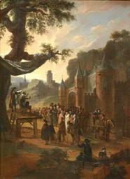 | Keywords: Waterschoot - Quacksalberbühne.JPG Quacksalberbühne mit feuerspeiendem Harlekin; um 1747; Öl auf Leinwand doubliert; 86 5 x 65 5 cm; Monogramm u m W; Theaterwissenschaftliche Sammlung der Universität zu Köln Schloss Wahn Inv Nr 6022 c 1747 Oil on canvas cm 86 5 65 5 http //www schloss-wahn de/bestaende html other versions PD-old-100 Henri van Waterschoot Deutsche Wanderbühne 1747 oil on canvas paintings 18th-century paintings of buildings Quackery Street performers in art Theaterwissenschaftliche Sammlung der Universität zu Köln |