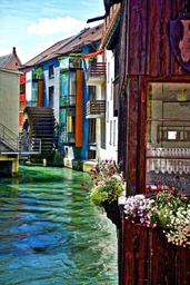 Keywords: waterwheel canal historical traditional flowers
