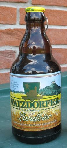 Keywords: WatzdorferLandbier.jpg en A bottle of Watzdorfer Landbier own Miguel Andrade 2012-08-11 Steinie beer bottles Beers of Thuringia Cc-zero