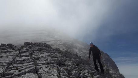 Keywords: watzmann mountaineering climb hiking wanderer rock berchtesgadener land alpine mountains berchtesgaden alps berchtesgaden national park massif fog great watzmann lime eastern alps adventure descent get off steinernes meer