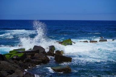 Keywords: wave inject foam breakwater sea ocean water spray stones block stone blocks