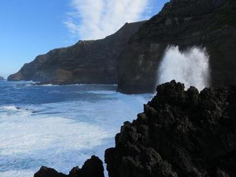 Keywords: wave spray motion volcanic rock cliffs sea ocean
