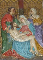 Keywords: way of the cross church christ crucifixion jesus catholic christianity art good friday suffering descent from the cross relief mourning death passion eifel