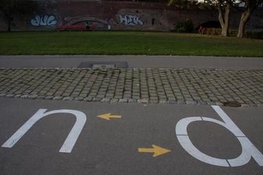 Keywords: way cycle path walk arrows mark n d installation graffiti city wall grunge wall city masonry youth creativity paint sprayer spray vandalism graphic graphically