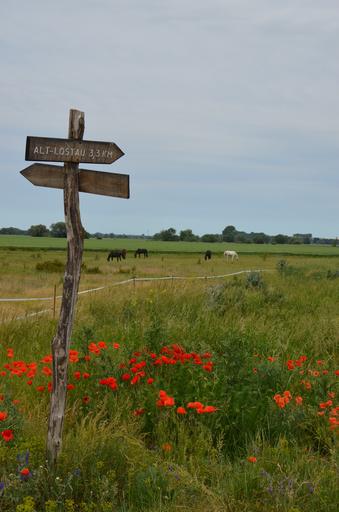 Keywords: way way meadow poppy red klatschmohn horses away grass nature direction hiking shield target outdoor green sky joy of life right arrow