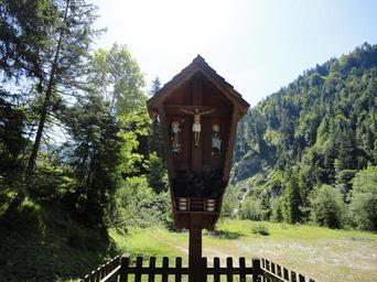 Keywords: wayside cross mountains faith catholicism bavaria memorial plaque