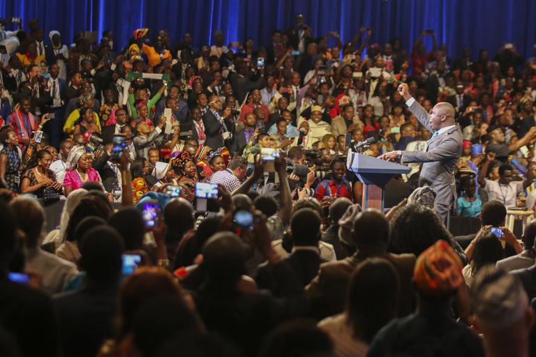 Keywords: Mandela Washington Fellow Emmanuel Odama of Uganda introduces President Obama at the YALI Presidential Summit, August 3, 2016. State Department Photo by Tim Brown. Mandela Washington Fellowship Presidential Summit, Washington, DC, August 1 - 3, 2016 Young African Leaders Initiative (YALI) washingtondc yali yalinetwork potus barackobama