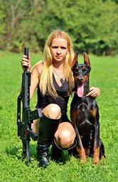 Keywords: weapon doberman dog woman pistol hunting sniper target grass sexy model