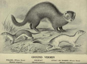 | Keywords: Weasel, stoat & fitch.png Least weasel stoat and European polecat Practical game-preserving a complete guide to the rearing and preservation of both winged and ground game and the destruction of vermin 1906 Carnegie W PD-old Mustela putorius in art Weasels in art Stoats in art |