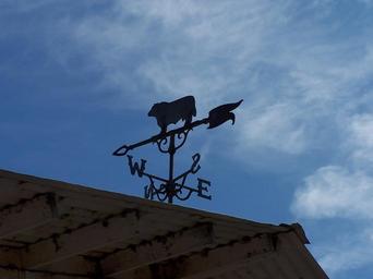 Keywords: weather vane sky barn wind direction blue east north west south metal arrow climate roof compass meteorology old windy weathercock vintage silhouette outdoor object cloud building weather-vane outdoors weather pointing