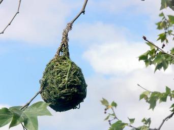 Keywords: weavers birds nests fauna trees leaves green leafy house nesting home blue sky nature plants flora branches wildlife ploceidae passerine round balls shaped