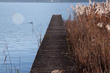 Keywords: web lake bank water blue rest sunny landscape nature boardwalk winter haze reed phragmites australis grass poaceae marsh plant bluegrass