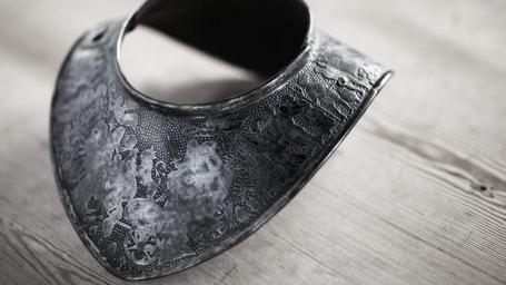 | Keywords: Web, Rustkammaren. Carl Gustaf Wrangels ringkrage - Skoklosters slott - 88036.tif David Casparsson Kohl sv Krage av stål bestående av två delar på vänstra sidan sammanhållna av en nit på högra sidan låsanordning Kragens främre del med nyckelhålsformigt hål vilket träs över nithuvud på kragens bakre del Hela kragen med högetsad förgylld dekor mot tätt prickmönstrad botten Även de upphöjda figurerna etsade raderade <br/>Framsidan Fältherren åkande i triumfvagn på kuskbocken Svea lejon vagnen dragen av tre hästar <br/><br/>Inskription NON EST MORTALE QUOD OPTO 1666 Över Carl Gustaf Wrangel ängel med lagerkrans På båda sidor om triumfvagnen en grupp med fyra personer alla med <br/><br/> olika attribut från vänster till höger 1 Kvinna med påfågel Fåfängan 2 Zeus <br/><br/> 3 Merkurius 4 Soldat med fisk 5 Man i orientaliska kläder hållande kors och pokal <br/><br/> 6 Kvinna med fågel 7 Kvinna med vattenflaska och glas 8 Soldat med hillebard <br/><br/> På baksidan Wrangels grevevapen av Salmis från år 1653 Till höger därom <br/><br/> monogram CGWF På båda sidor om sköld och monogram - trofegrupper original caption Web Rustkammaren Carl Gustaf Wrangels ringkrage <br/> Nyckelord Webbprojektet Stämningsbild Ringkrage Föremålsbild 1666 size mm 265 120 259 SKO Carl Gustaf Wrangel NON EST MORTALE QUOD OPTO place of origin original filename sm_dig6999 27218 inventory number SKO 7104 88036 CC-BY-SA Erik Lernestål Erik Lernestål Media contributed by LSH unmatched creator Media contributed by LSH unmatched keyword Gorgets Media contributed by LSH 2013-10 Arms and armour in the Skokloster Castle |