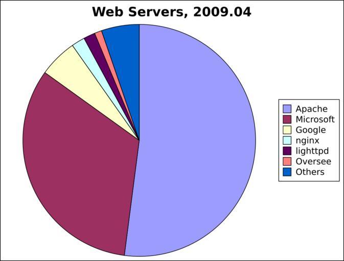 | Keywords: Webservers 2009.04.svg File Usage share of web servers Source Netcraft svg en pie chart graph of data on Wikipedia Web Server page under Market Structure a list of top Web server software vendors published in a Netcraft survey in January 2009 Own Monz 2009-04-26 Software development Web server Websites Servers |