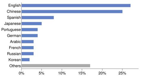 | Keywords: WebsiteUserLanguageBars.svg en Bar chart showing the top languages of website users 2014-03-12 21 28 59 own based on data from https //en wikipedia org/wiki/Languages_used_on_the_Internet <br/> ValidSVG Xan Gregg File InternetUsersByLanguagePieChart svg cc-zero Uploaded with UploadWizard Languages Internet access Information technology and development Internet language statistics | ||||