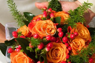 Keywords: wedding bouquet flowers roses orange ring rings flower rose celebration