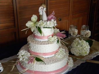 Keywords: wedding cake wedding cake flowers delicious decorated bakery ribbon bridal groom celebrate frosting pink white sweet marriage tier icing wed married