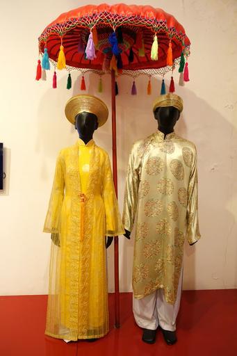 Keywords: Wedding costumes of Nguyen Duc Thinh and Le Diem Thi, Hue, 2006 - Vietnamese Women's Museum - Hanoi, Vietnam - DSC04355.JPG en Exhibit in the Vietnamese Women's Museum Hanoi Vietnam Photography was permitted in the museum without restriction 2014-08-04 04 20 25 own Daderot other versions cc-zero Viet clothing in the Vietnamese Women's Museum Uploaded with UploadWizard