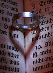 Keywords: wedding ring wedding rings wedding rings before heart love book book page symbol togetherness romance white gold bible old antique transient historically holy scripture hispanic shadow play light shadow