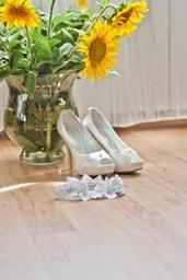 Keywords: wedding shoes higheels garter flowers sunflower