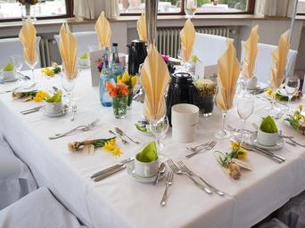 Keywords: wedding table ballroom hall wedding decoration wedding festivity decoration covered celebration wedding celebration wedding feast table board cutlery festive candles