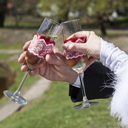 Keywords: wedding wine glasses young love just married