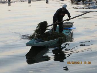 Keywords: 'Weed Remover' on Dal Lake..JPG en A boatman removing weed from the Dal Lake The Dal Lake is infested with weed which requires cleaning own Rudolph A furtado Friday 8-3-2013 Ferrymen on Dal Lake Cc-zero