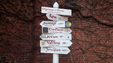 | Keywords: Wegweiser Pilgerwege in Europa Hamburg.jpg de Vor einer Hamburger Kirche zeigt ein Wegweiser die Richtung zu bedeutenden europäischen Pilgerwegen en Hiking fingerpost in front of a chruch in Hamburg directs to europe's main pilgrim routes 2014-02-25 14 29 58 own Timmaexx cc-zero Uploaded with UploadWizard Hiking and footpath signs in Hamburg 2014 in Hamburg |