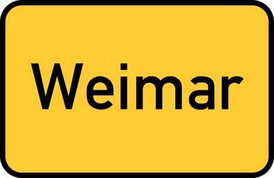Keywords: weimar thuringia town sign city limits sign entry sign gateway sign traffic road sign street sign directory yellow germany direction unesco world heritage site