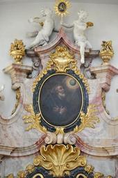 | Keywords: Weingarten Benediktsaltar Oberblatt.jpg Weingarten Württemberg Basilika St Martin und Oswald Heiligenaltäre in den Seitenschiffen von Franz Schmuzer nach Entwurf von Donato Giuseppe Frisoni mit Putten von Diego Francesco Carlone <br />Benediktsaltar Oberblatt žVision des hl Benedikt von Giulio Benso own own photograph 2011-03 Giulio Benso Photo Andreas Praefcke Altars in Basilika St Martin Weingarten Paintings of Benedict of Nursia Giulio Benso Photos by User AndreasPraefcke | ||||