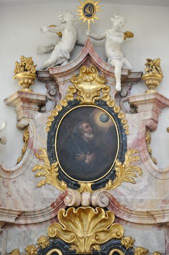 Keywords: Weingarten Benediktsaltar Oberblatt.jpg Weingarten Württemberg Basilika St Martin und Oswald Heiligenaltäre in den Seitenschiffen von Franz Schmuzer nach Entwurf von Donato Giuseppe Frisoni mit Putten von Diego Francesco Carlone <br />Benediktsaltar Oberblatt žVision des hl Benedikt von Giulio Benso own own photograph 2011-03 Giulio Benso Photo Andreas Praefcke Altars in Basilika St Martin Weingarten Paintings of Benedict of Nursia Giulio Benso Photos by User AndreasPraefcke |