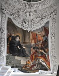 | Keywords: Weingarten Fresko Joch3 Benediktsleben Süd1.jpg Weingarten Württemberg Basilika St Martin und Oswald Fresken von Cosmas Damian Asam 1718 “1720<br /> Fresken im 3 Langhausjoch Thema Leben des hl Benedikt von Nursia; südliche Quertonne Der Ostgotenkönig Totila prüft die Sehergabe Benedikts own own photograph 2011-03 Creator Cosmas Damian Asam Photo Andreas Praefcke Frescos in Basilika St Martin Weingarten Photos by User AndreasPraefcke Frescos of Benedict of Nursia Totila Ermine clothing in art |