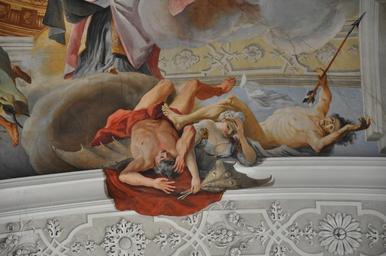 | Keywords: Weingarten Langhausfresko Joch3 02.JPG Weingarten Württemberg Basilika St Martin und Oswald Fresken von Cosmas Damian Asam 1718 “1720<br /> Fresko im 3 Langhausjoch žGlorie des Hl Benedikt Detail Teufel Eitelkeit und Tod werden aus dem Himmel verbannt own own photograph 2011-03 Creator Cosmas Damian Asam Photo Andreas Praefcke Frescos in Basilika St Martin Weingarten Photos by User AndreasPraefcke Paintings of the Devil Paintings of Vanitas Death in art | ||||