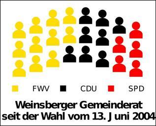 | View Original: | Weinsberg Gemeinderat Sitzverteilung seit 2004.svg (634x512) | |||