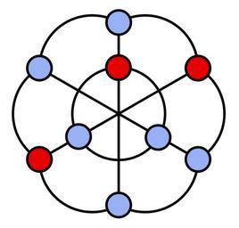 | Keywords: Well-covered graph.svg well-covered graph the intersection graph of the nine diagonals of a hexagon The same graph is also one of the members of the Petersen family One of its 14 maximal independent sets is shown as the set of red vertices; each maximal independent set has the same number of vertices and each corresponds to one of the 14 triangulations of the hexagon own Modified from one of the graphs in File Petersen family svg David Eppstein 2011-08-09 Cc-zero Graph theory Files by User David Eppstein from en wikipedia |