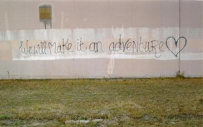 Keywords: graffiti adventure wall painted writing outdoor text 'We will make an adventure' graffiti by ? 2015 'We will make an adventure' graffiti by ? 2015