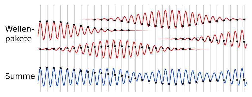 | Keywords: Wellenpakete Summe.svg de Einzelne Wellenpakete gleicher Frequenz und unterschiedlicher Phase Das Summensignal ergibt eine Kohärenzzeit in der Größenordnung die der Dauer der einzelnen Wellenpakete entspricht 2011-09-03 own <br /> Created with Matplotlib Christian Schirm cc-zero Uploaded_with_UploadWizard Coherence Quell-code Erstellt mit Phython und anschließend bearbeitet mit Inkscape Benötigte Open-Source-Software http //www python org/download Python Python-Paket http //sourceforge net/projects/numpy numpy Python-Paket http //matplotlib sourceforge net matplotlib Nach der Installation von Python den Quelltext in eine Datei plot py kopieren und starten durch Doppelklicken oder in der Konsole durch Eingabe von python plot py Python-Skript <source lang python > This source code is public domain Author Christian Schirm import numpy pylab from matplotlib font_manager import FontProperties import matplotlib pyplot as plt pos 4 1 5 6 9 phase 0 2 0 0 0 6 0 3 x numpy linspace 0 10 num 500 ys numpy cos 4 x 2 numpy pi + f 2 numpy pi numpy exp - x-p /1 5 2 for p f in zip pos phase Y numpy sum ys axis 0 for i in range len ys ysi+ i 2 plt clf for y in ys plt plot x y '-' plt plot x Y-3 '-' for i in range 40 plt plot i 25 i 25 -5 10 '0 8' x numpy linspace 0 10 num 41 ys numpy cos 4 x 2 numpy pi + f 2 numpy pi numpy exp - x-p /1 5 2 for p f in zip pos phase Y numpy sum ys axis 0 for i in range len ys ysi+ i 2 for y in ys plt plot x y 'bo' markersize 3 plt plot x Y-3 'bo' markersize 3 plt show </source> |