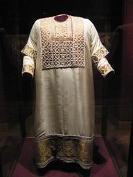| Keywords: Weltliche Schatzkammer Wien (164).JPG Die Alba Palermo königliche Hofwerkstatt 1181 mit späteren Ergänzungen Seide Golddrahtstickerei Perlen Smaragde Saphire Amethyst Spinell Granat Opal 154 cm hoch am Saum 127 cm breit SK Inv -Nr XIII 7 The Alb Palermo Royal Court Workshop 1181 With later additions Silk gold embroidery pearls emeralds sapphires amethyst spinel garnet opal 154 cm high 127 cm wide at the hem SK Inv No XIII 7 Own 2007-10 MyName Gryffindor Alb of the Holy Roman Empire Secular and Ecclesiastical Treasury |