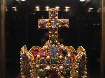 | Keywords: Weltliche Schatzkammer Wien (168).JPG Die Reichskrone Westdeutsch 2 H 10 Jahrhundert; das Kronenkreuz einer Hinzufügung des frühen 11 Jahrhunderts; der Bügel aus der Zeit Kaiser Konrads II 1024-1039 ; die rote Samthaube aus dem 18 Jahrhundert Gold Email Zellenschmelz Edelsteine Perlen Stirnplatte H 14 9 cm B 11 2 cm ; Kronenkreuz H 9 9 cm SK Inv -Nr XIII 1 The Imperial Crown Western Germany 2nd half of the 10th century The cross is an addition from the early 11th century; the arch dates from the reign of Emperor Conrad II ruled 1024-1039 ; the red velvet cap is from the 18th century Gold cloisonné enamel precious stones pearls Brow plate H 14 9 cm W 11 2 cm; cross H 9 9 cm SK Inv No XIII 1 Own 2007-10 MyName Gryffindor 100px 100px 100px part of panorama Weltliche_Schatzkammer_Wien_ P01 jpg Velvet Secular and Ecclesiastical Treasury |