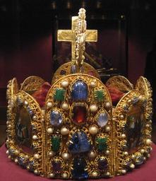 | Keywords: Weltliche Schatzkammer Wien (P02).jpg Die Reichskrone Westdeutsch 2 H 10 Jahrhundert; das Kronenkreuz einer Hinzufügung des frühen 11 Jahrhunderts; der Bügel aus der Zeit Kaiser Konrads II 1024-1039 ; die rote Samthaube aus dem 18 Jahrhundert Gold Email Zellenschmelz Edelsteine Perlen Stirnplatte H 14 9 cm B 11 2 cm ; Kronenkreuz H 9 9 cm SK Inv -Nr XIII 1 The Imperial Crown Western Germany 2nd half of the 10th century The cross is an addition from the early 11th century; the arch dates from the reign of Emperor Conrad II ruled 1024-1039 ; the red velvet cap is from the 18th century Gold cloisonné enamel precious stones pearls Brow plate H 14 9 cm W 11 2 cm; cross H 9 9 cm SK Inv No XIII 1 Own 2007-10 MyName Gryffindor stitched by Marku1988 Autostitch 100px 100px 100px Imperial Crown of the Holy Roman Empire Secular and Ecclesiastical Treasury |