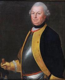 | Keywords: Wenzeslaus von Lehwaldt.png Porträt des preußischen Generalleutnants Baron Wenzeslaus Christoph von Lehwaldt de t 18 Februar 1717 auf Gut Ublick bei Johannisburg in Ostpreußen; 27 Dezember 1793 < 1777 Oil on canvas cm 78 64 Institution unknown unknown other versions PD-old-100 DEFAULTSORT 1777<; Wenzeslaus von Lehwald Leonhard Schorer 18th-century portrait paintings location missing Lehwaldt family 18th-century portrait paintings not categorised by year Male 18th-century oil portraits of men at half length in military uniforms 18th-century oil portraits of men at half length wearing cuirass Generals of Prussia Male portrait paintings with powdered wigs Military people of Prussia of the 18th century Portrait paintings with neutral background Portrait paintings of men holding baton Portrait paintings of men with swords Portraits with gloves |