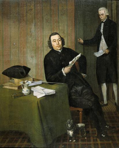| Keywords: Wernerus Köhne (1725-26-88). Notaris te Haarlem, met zijn knecht Jan Bosch Rijksmuseum SK-C-532.jpeg accession number SK-C-532 nl Portret van Wernerus Köhne notaris te Haarlem met zijn knecht Jan Bosch De notaris zit met een papier in de hand aan een tafel waarop zijn hoed en pijp boeken en documenten liggen Bij zijn voeten staat een hondje drager Height cm 63 drager Width cm 51 exhibition history Institution Rijksmuseum Technique oil canvas object history Acquisition 1899 object type Potential derivatives exist check http //commons wikimedia org/w/index php search Rijksmuseum+SK-C-532 this search PD-US PD-old-100 Data and photography rights All data and all images made available through the API are either in the public domain or are subject to a CC0 license https //www rijksmuseum nl/en/api/terms-and-conditions-of-use cc-zero place of creation http //www rijksmuseum nl/collectie/SK-C-532 Wernerus Köhne 1725/26-88 Notaris te Haarlem met zijn knecht Jan Bosch Q17342879 Uploaded with GWToolset Wernerus Köhne 1725-26-88 Notaris te Haarlem met zijn knecht Jan Bosch Rijksmuseum SK-C-532 http //www rijksmuseum nl/media/assets/SK-C-532 Images uploaded by Fæ Images from the Rijksmuseum Paintings by Wybrand Hendriks in the Rijksmuseum Amsterdam Wybrand Hendriks |