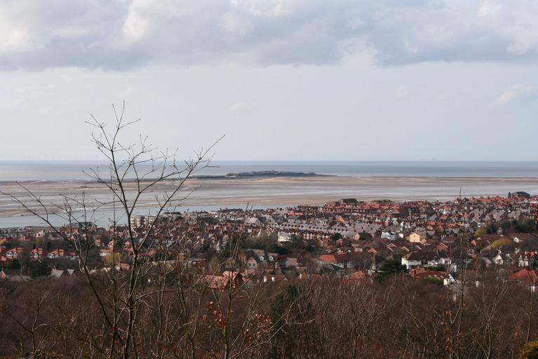 Keywords: town west kirby hilbre wirral island beach sea shore sand houses buildings scenic sky blue