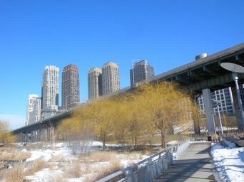 Keywords: building cityscape cloudy construction dwellings elevated highway hudson new nyc overpass river side sky skyline summer west york