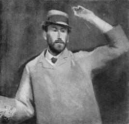 | Keywords: Westermayr Selbstbildnis mit Pinsel.jpg Artwork de Selbstbildnis mit erhobenem Pinsel en Self-portrait with elevated paintbrush oil canvas cm 92 89 de Original verschollen Scan aus dem Neumann-Katalog <ref name Neumann /> en original painting is lost scan from the Neumann-Catalogue <ref name Neumann /> de Katalog Nr 17 im Neumann-Katalog <ref name Neumann >J B Neumanns Bilderhefte Berlin 1920/21; Heft Nr V Sonderheft Konrad Westermayr 1883-1917</ref> en Catalogue number 17 in the Neumann-Catalogue <ref name Neumann /> 1913 Konrad Westermayr 1883-1917 PD-old <references /> Other versions Konrad Westermayr Self-portraits Black and white reproductions of portrait paintings in color |