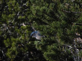 Keywords: western scrub-jay bird grand canyon blue jay tree scrub-jay male hiding pinyon pine pine tree pine sitting grey green aphelocoma californica