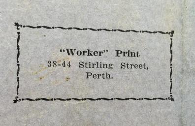 | Keywords: Westralian worker print mark label 02.jpg en w Westralian Worker Print Perth Western Australia printers mark inside back of railway union booklet from the 1930's see also Citation Westralian Worker Collection of miscellaneous political and trade union pamphlets printed by the Westralian Worker press c 1920-1950 1920 Westralian Worker http //trove nla gov au/work/159322133 18 March 2013 2013-02-26 21 18 35 Booklet printed by the Westralian Worker Westralian Worker as printer ceased by 1951 PD-Australia Uploaded with UploadWizard Publishers from Australia Westralian Worker |